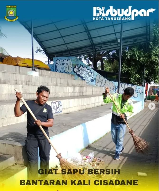 Giat sapu bersih rekan-rekan pemeliharaan taman melakukan penyapuan area bantaran kali cisadane agar tetap terjaga kebersihannya nih sobat taman ??Follow @tamankita.tngĀ untuk mengetahui info